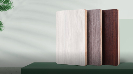 鋁箔板是以多層板為芯材,在板材兩面熱壓鋁箔片后而形成的板材,具有防水/防潮/耐污、環保等特點,可作為高端櫥柜配套專用板材。